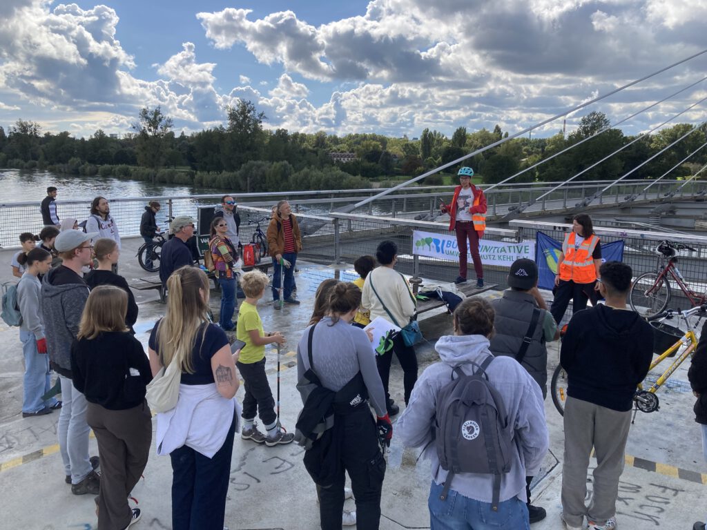 Zu Beginn konnte Clarisse Kauber, Vorstand der BI Umweltschutz, rund 50 Jugendliche und Erwachsene auf der Passerelle für die grenzüberschreitenden Aktion „Rhine Clean up“ begrüßen. Dabei verwies sie neben der Bedeutung der Sammlung auch auf das gemeinsame Ziel, zur Reduzierung des Mikroplastiks im Rhein beizutragen.