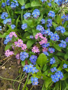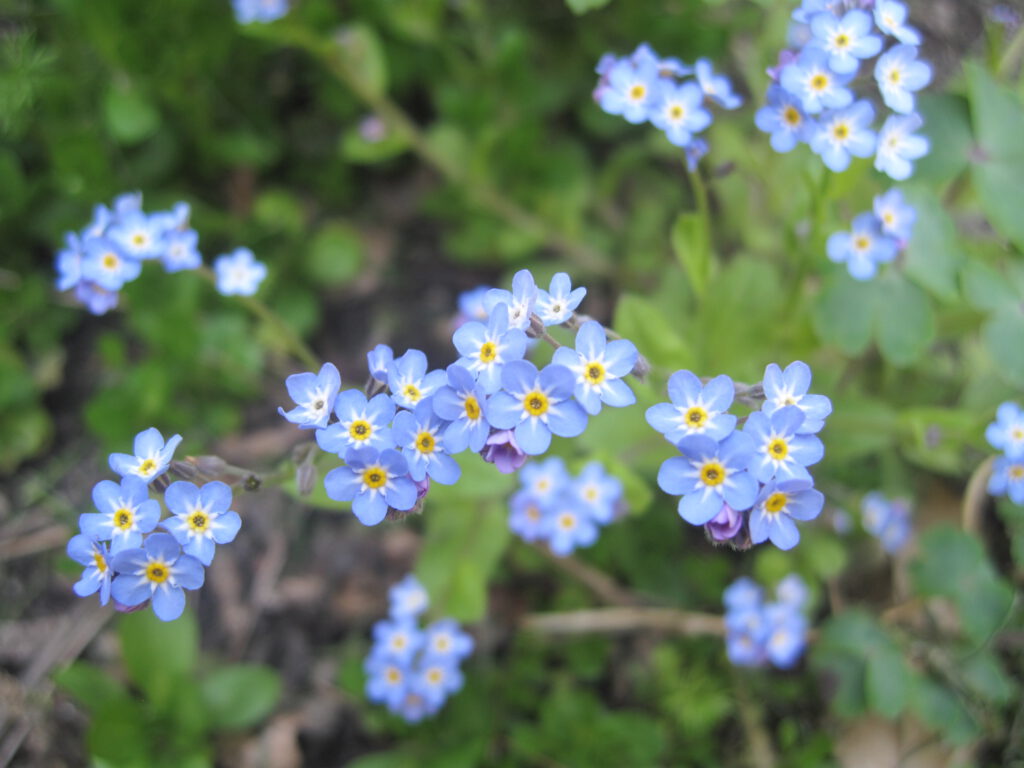 Auch das wohlbekannte Vergissmeinnicht gibt es in vielen verschiedenen Sorten, die ab Frühjahr oder Frühsommer mit einem Blütenmeer aus hellblauen Sternchen bezaubern. Die heimischen Sorten unterscheiden sich nach Standort und Lebensform: Während das eher kleine und Sonne liebende Acker-Vergissmeinnicht (Myosotis arvensis) sich als einjährige Pflanze jedes Jahr neu aussät, ist das Wald-Vergissmeinnicht (M. sylvatica) zweijährig und das Sumpf-Vergissmeinnicht (M. palustris) sogar mehrjährig, also eine Staude. Die im Handel erhältlichen rosa und weiß blühenden Varianten stammen meist von Myosotis sylvatica ab, bevorzugen also leicht feuchten Halbschatten. Sie sind alle genügsam und benötigen am für sie richtigen Standort keinerlei Pflege. Der lateinische Name bedeutet „Mäuseöhrchen“, was sich auf die eher kleinen Blätter bezieht.