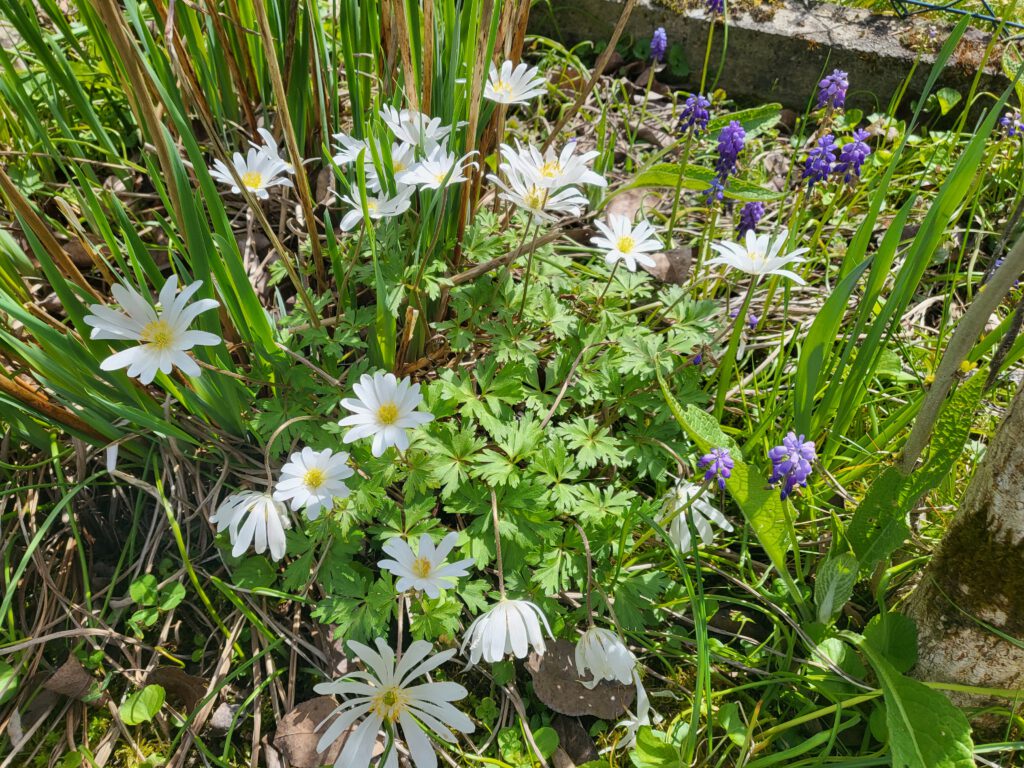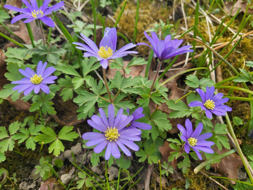 Die Balkan-Anemone (Anemona blanda) wird auch Strahlen-Windröschen genanntund wächst wild in Südosteuropa, Vorderasien und im Kaukasus. Unsere Gärten bereichert sie seit vielen Jahren mit ihren meist hellblauen Blüten, wobei es auch Sorten in rosa und weiß gibt. Sie gehört ab dem späten Februar zu den ersten Frühlingsboten, öffnet ihre strahlenförmigen Blüten aber bis in den April hinein für hungrige Insekten. Sie wächst in nicht zu sonnigen Rasenflächen fast ebenso gut wie im Halbschatten unter Laubgehölzen. Durch Selbstaussaat verwildert sie über die Jahre zu lockeren Blütenteppichen, gerne zusammen mit Traubenhyazinthen und Schlüsselblumen. Sie benötigt keinerlei Pflege und gedeiht sogar am besten, wenn man sie einfach in Ruhe lässt.